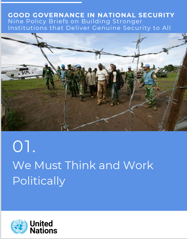 This Policy Brief, written in partnership with ODI Global, is the first in a Series on Good Governance in National Security that the United Nations has commissioned in collaboration with the World Bank as part of its Security Sector Reform (SSR) project. The Brief argues that, despite skilled advisers, funding, and agreements between donors and governments, SSR efforts in fragile and conflict-affected states frequently fall short of expectations. It posits that a deeper understanding of the political economy of the security sector is needed to design and implement reforms that are more effective and sustainable.