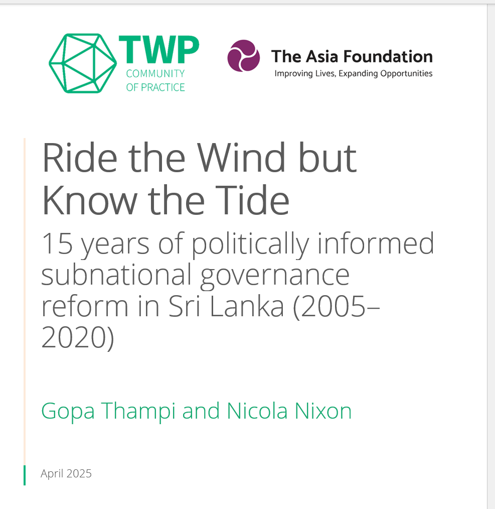 This long story of change provides an example of TWP in practice, by unpacking The Asia Foundation (TAF)’s efforts to support reform of Sri Lanka’s subnational governance sector from 2005 to 2020. This work built upon several decades of support to strengthen democracy, resolve conflict, and encourage greater citizen participation in policymaking since TAF first established an office in Sri Lanka in 1954. The study seeks to show how, over time, the TAF subnational governance programme “worked politically” by navigating the political dynamics of devolution, prioritising locally led change, encouraging experimentation and iteration, and fostering coalitions of reform-minded actors, within a shifting and rapidly evolving context that included the final stages of the civil war, post-war reconstruction, a constitutional crisis, terror attacks, and, most recently, a debilitating economic crisis.